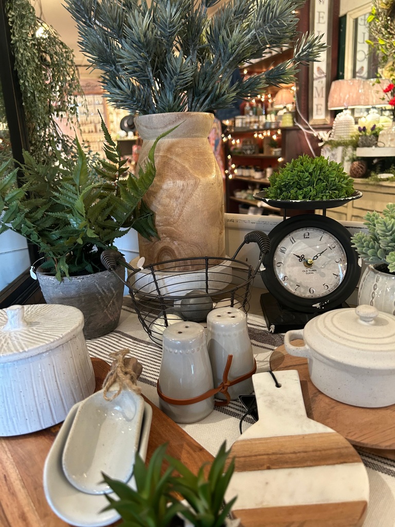 When you enter the Knock on Wood Gift Shop you’ll feel the charm of our unique and ever~changing inventory. We carry a variety of curated collections for the country home along with seasonal decor. Our hope is that you’ll feel inspired by the displays and vignettes that surround you during your shopping experience.